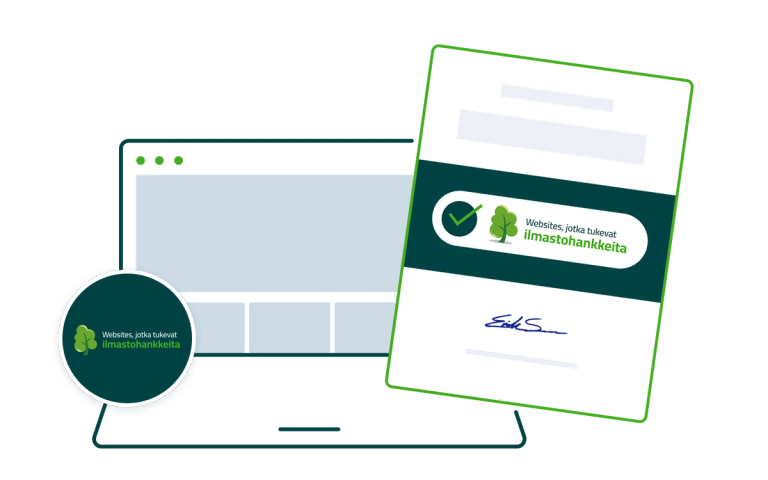 Sijoita kestäviin ja ilmastoa edistäviin hankkeisiin – ilman, että sinun tarvitsee olla asiantuntija. Tunnistettava vihreä merkki verkkosivustollasi kertoo sitoutumisestasi ja toimii selkeänä, luotettavana vastuullisuuden osoituksena.